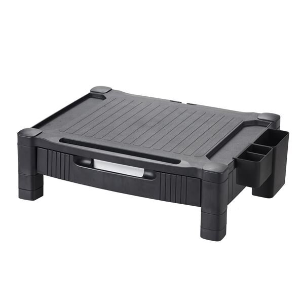Stojan pod monitor Q-C - zásuvka a přihrádky,černý