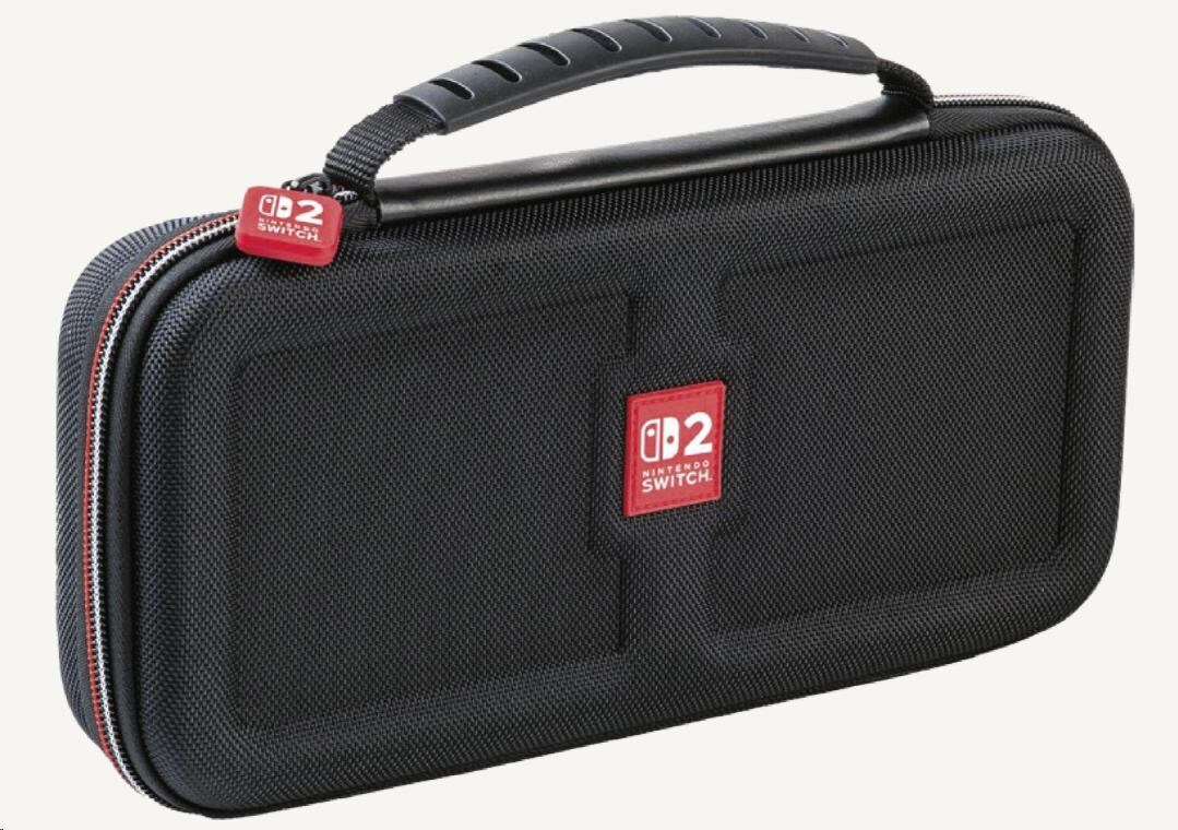 • Luxusní přepravní pouzdro pro herní konzoli Nintendo Switch 2, kompatibilní rovněž s konzolemi Switch a Switch - OLED Model.• Nastavitelný stojánek umožňuje pohodlněji sledovat dění na obrazovce a při přepravě chrání obrazovku konzole i její analogové páčky před poškozením.• Dvanáct kapsiček na vnitřní straně stojánku slouží k uložení herních karet.• Vyjímatelná vnitřní výstelka umožňuje přenášet v pouzdru bezpečně také konzoli Switch nebo Switch - OLED Model.• Přenášení pouzdra usnadňuje pohodlná rukojeť.• Dvě plastová pouzdra pro microSD karty, každé s kapacitou dvou microSD karet. Každé z nich se vejde do libovolné kapsičky pro herní karty.