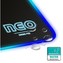 Profesionální podložka herní řady NEO určená i pro amatérské využití. Podložka má měkký, příjemný povrch. Při velikosti herní plochy 320 × 240 mm vám nikdy nedojde prostor k pohybu. Velkou výhodou je pogumovaná protiskluzová spodní strana a antistatický povrch, po kterém bez problému bude jezdit každá myš. Materiál byl navržen tak, aby odpuzoval vodu a nečistoty. Podložka má obšité okraje s RGB podsvícením. V levé části podložky je ovládací panel, díky kterému si můžete zvolit až z 11 barevných módů.