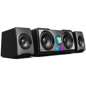 Elegantní 2.1 stereo reproduktory minimálních rozměrů, napájené přes běžné USB rozhraní. Ideální volba pro posílení zvukového zážitku z Vašeho notebooku, netbooku anebo PC. Přenos audio signálu standardním 3,5mm audio konektorem. Ovládání hlasitosti na přední straně reproduktoru. Kompaktní rozměry umožňují umístit satelitní reproduktory na váš pracovní stůl vedle obrazovky nebo notebooku, a přesto budete mít dostatek pracovního prostoru.