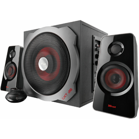 Systém GXT 38 dosahuje maximálního výkonu 120 W, což stačí na vytvoření „zvukové stěny“. Součástí sady je velký dřevěný subwoofer se 7palcovým reproduktorem, který vytváří mocné basy, které doslova cítíte. Satelitní reproduktory produkují zvuk optimální kvality ve středním a vysokém pásmu. Ovladačem na boku subwooferu můžete samostatně upravit míru basů a připravit si tak zvuk podle svých představ.