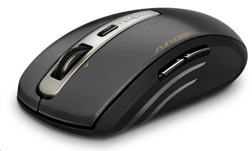 Tato myš s rozšířenou bezdrátovou technologií s třemi tlačítky v symetrickém designu, pracující na spolehlivé frekvenci 5.8GHz a s decentním designem kovového pásku u kolečka. Pracovní rozsah je až 10 metrů.