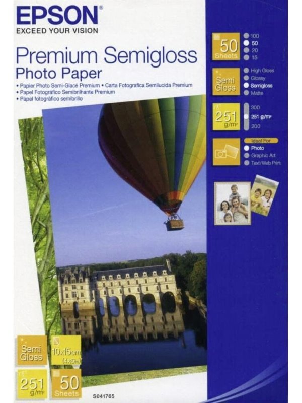 EPSON fotopapír C13S041765/ 100x150 mm/ Premium Semigloss Photo / 50 listů