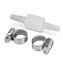 Montážní sada obsahuje vše potřebné k upevnění ventilu - dvě robustní hadicové spony, které zajistí bezpečné připojení. Ventil je kompatibilní se standardními odtokovými hadicemi o vnitřním průměru do 10 mm, takže je univerzálně použitelný v běžných domácnostech.