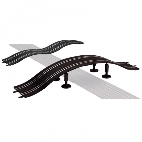 Nerovná dráha/most set pro autodráhy GO!!!, GO!!!Plus a Digital 143.V balení jsou:- 2 konvexní díly- 2 dlouhé konkávní díly- 4 krátké konkávní díly- 12 kontektorů- 4 sloupce