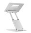 Tento plně nastavitelný stojan na notebook vám umožní umístit obrazovku do úrovně očí, ať už sedíte, stojíte nebo se nacházíte mezi těmito polohami. Je ideální pro zajištění ergonomicky správného držení těla při práci, jako řečnický pult při prezentacích nebo dokonce jako stojan na kuchařku při vaření.