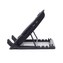 Podstavec je vhodný pro notebooky do velikosti 17", pevný a zároveň lehký, s rozměry 370 x 265 x 33 mm v složeném stavu a celkovou hmotností pouze 0,66 kg, takže jej snadno přenesete i použijete doma či v kanceláři. Pětistupňové nastavení náklonu umožní vybrat ideální úhel pro každou příležitost a díky délce USB kabelu 0,5 m je připojení jednoduché a bezproblémové.