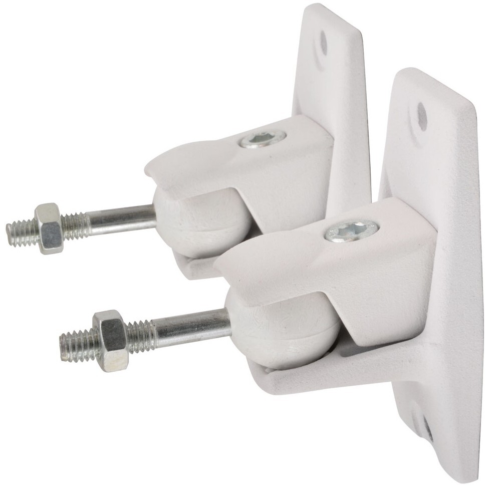 Univerzální držáky reproduktorů na zeď. Ideální pro zavěšení malých satelitních reproboxů domácího kina pro vytváření prostorového zvuku. Horizontální a vertikální natáčení držáků pro optimální umístění a směrování reproboxů. Dodáváno v páru se 3 velikostmi otočných ramen o průměru 6 mm (20 mm rovné, 50 mm pravoúhlé a 85 mm pravoúhlé). Bílé barevné provedení, montážní rozměry 72 x 38 x 42 mm, středy otvorů pro upevnění montážní desky v rozestupu 62 mm. Metrický závit 6 mm, maximální nosnost 3,5 kg.