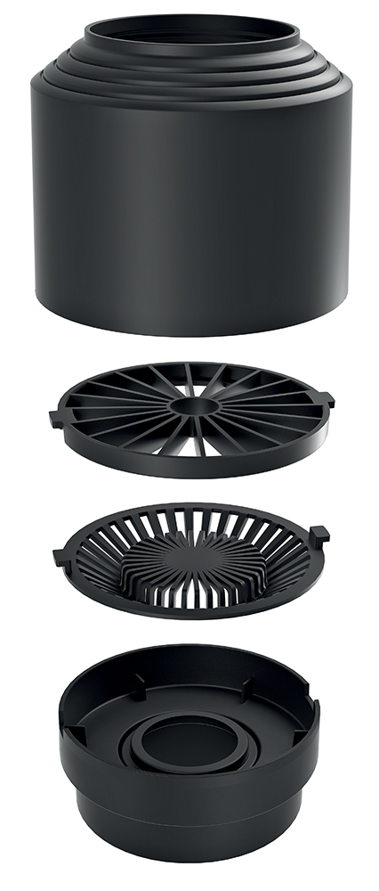 - Určen pro montáž do okapového svodu, kde zachytává větší nečistoty.