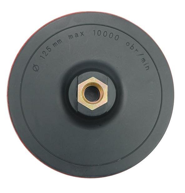 V pracovní části suchý zip pro rychlé a stabilní upevnění brusných kotoučů o průměru 125 mm.