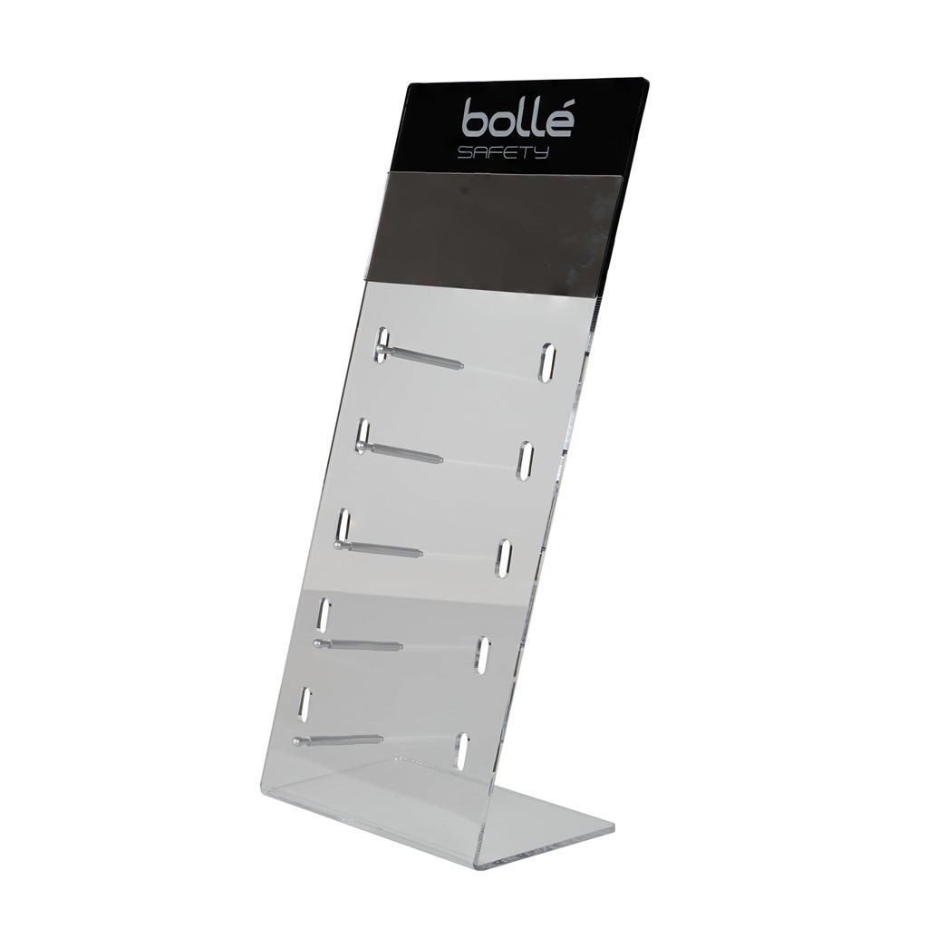 Pevný stojan určený k vystavení až pěti brýlí značky BOLLÉ. Stojan je vyrobený z odolného plexiskla, v horní části je opatřen výrazným logem značky a malým zrcadlem.