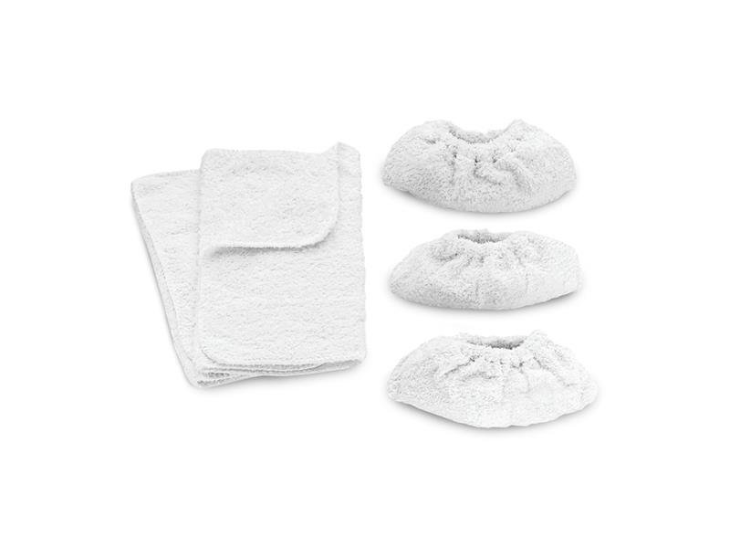 Sada utěrek z kvalitní bavlny se 2 širokými podlahovými utěrkami a 3 potahy pro ruční hubici. Podlahové utěrky se upevní na velkou podlahovou hubici. Potahy pro ruční hubici lze jednoduše a pohodlně natáhnout na ruční hubici. Odolné froté utěrky optimálně pojmou nečistoty a vyznačují se savostí bez pouštění vláken. Vhodné pro čištění podlah z PVC, linolea, dlažby a přírodního kamene.