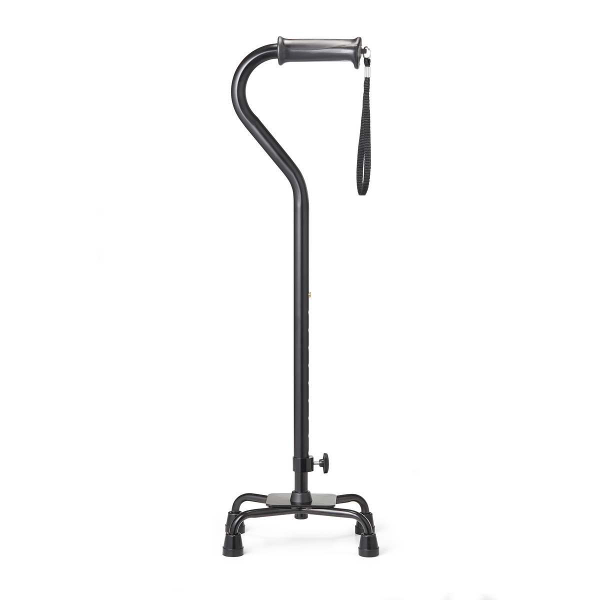 Vycházková hůl má čtyři malé nožičky, které poskytují širokou podpůrnou plochu, což vám poskytuje extra stabilitu. Ergonomická rukojeť dobře sedí v ruce a pomáhá absorbovat nárazy. Vycházková hůl je výškově nastavitelná.