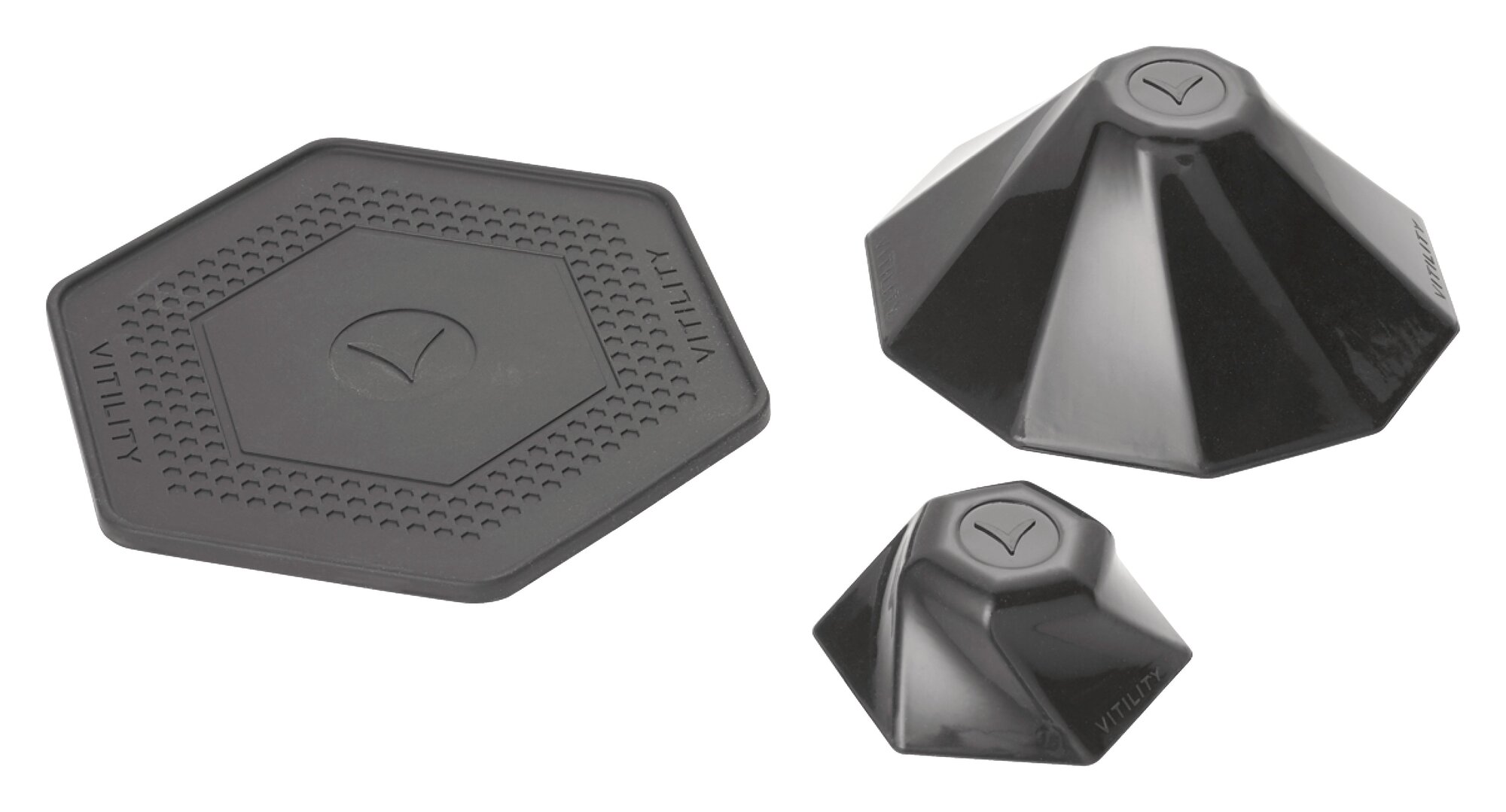 S pomocí dvou praktických otvíráků Vitility stačí menší síla k otevření nebo uzavření velkých sklenic do 10 cm a uzávěrů PET lahví. Sada obsahuje také tácek s neklouzavým povrchem pro sklenici. Použitý materiál je velmi poddajný, s výbornou přilnavostí a v ruce neklouže.