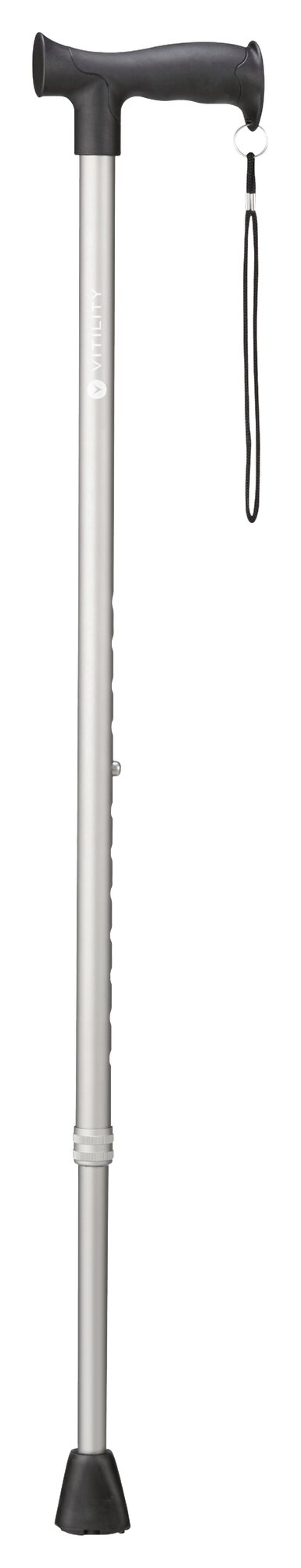 Značková hliníková hůl Vitility poskytuje maximální pohodlí při chůzi. Měkká horní strana rukojeti je velmi příjemná, umožňuje pohodlné uchopení a eliminuje vibrace. Poutko na zápěstí zajistí, aby hůl nevypadla z ruky na zem. Hůl Vitility lze nastavit do maximální výšky 71 cm a je tedy univerzálně použitelná. Určení ideální výšky pro správnou chůzi: Nastavte rukojeť hole až do výšky zápěstí a držte ruku podél těla