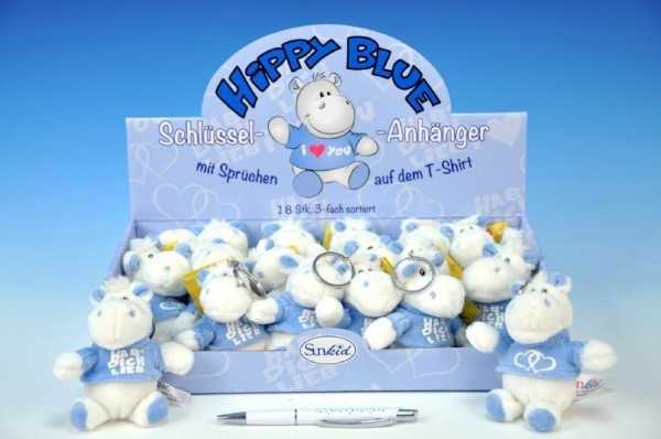 Přívěšek na klíče hroch plyš 10cm v modrém tričku