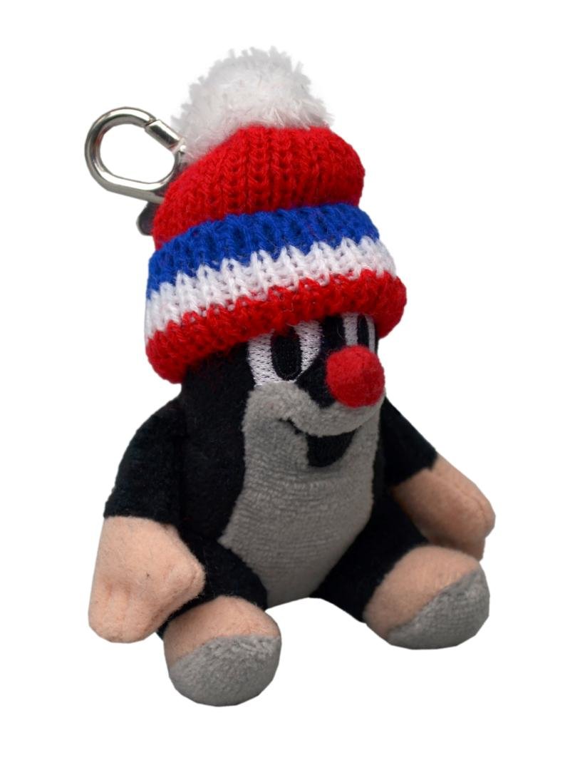 Plyšový přívěsek na kovové karabině. Krteček sedící s kulichem v červené trikoloře.Doporučený věk: od 1 roku, CE číst celé