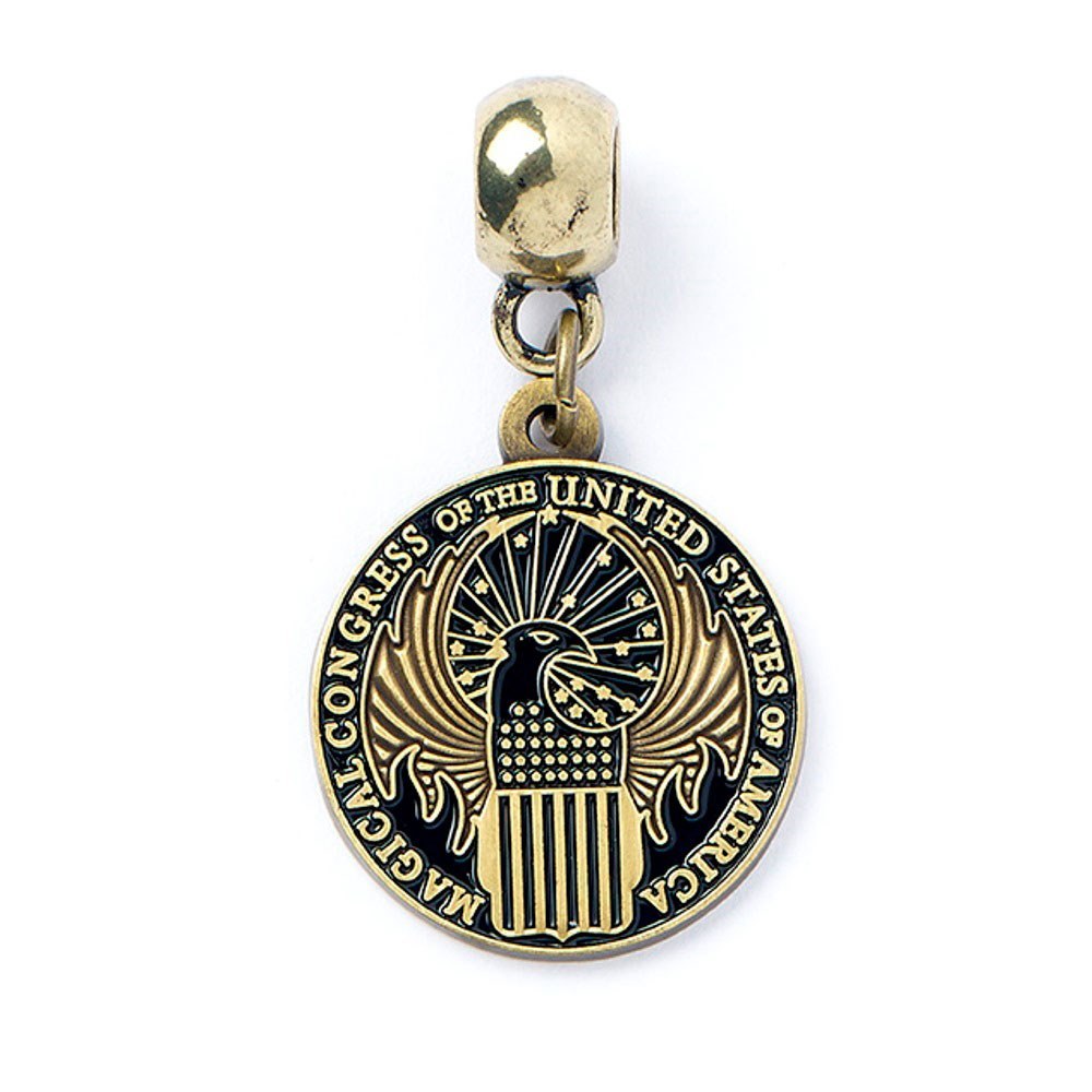 Přívěsek podle filmu Fantastická zvířata a kde je najít se znakem Magického kongresu, povrch je pokryt starožitně vypadající mosazí.
