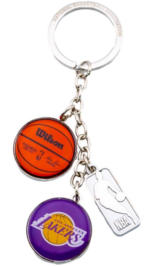 Oficiální produkt - přívěsek na klíče z katalogu výrobků se znakem, grafikou v klubových barvách nebo fotografiemi hráčů basketbalové reprezentace Los Angeles Lakers.