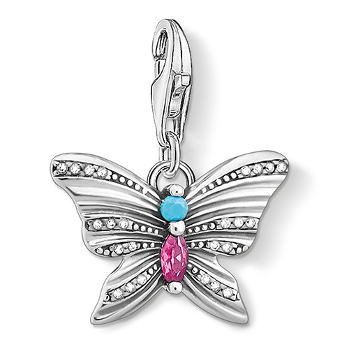 Přívěsek \"Motýl\" Thomas Sabo, 1831-342-7, Charm Club, 925 Sterling silver, blackened, glass-ceramic stone, synthetic corundum, zirconia | multicoloured