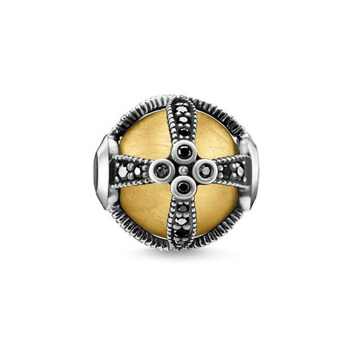 Korálek \"Královské zlato\" Thomas Sabo, K0306-849-11, Karma Beads, 925 Sterling silver, 18k yellow gold plating, blackened, zirconia black