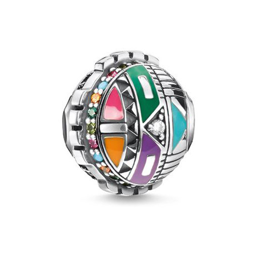 Korálek \"Symbol slunce\" Thomas Sabo, K0313-340-7, Karma Beads, 925 Sterling silver, blackened, cold enamel, glass-ceramic stone, synthetic corundum, zirconia | multicoloured