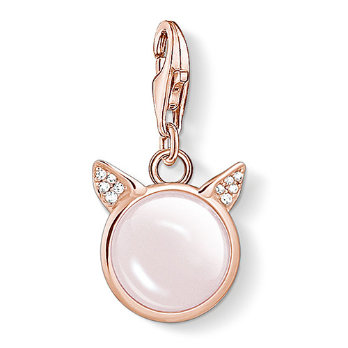 Přívěsek \"Kočičí uši\" Thomas Sabo, 1842-417-9, Charm Club, 925 Sterling silver, 18k rose gold plating, rose quartz, zirconia white