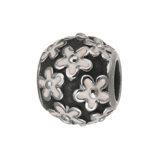 K0103 Navlékací ocelový přívěšek korálek s kytičkami - květiny