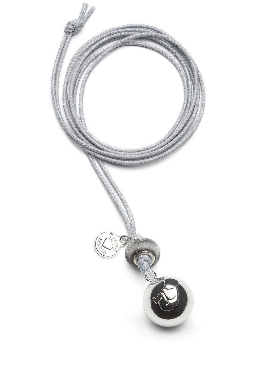 Mexická bola - kulička s miminkem, barva stříbrná, materiál kov / šňůrka, délka 120 cm, váha 15 g.