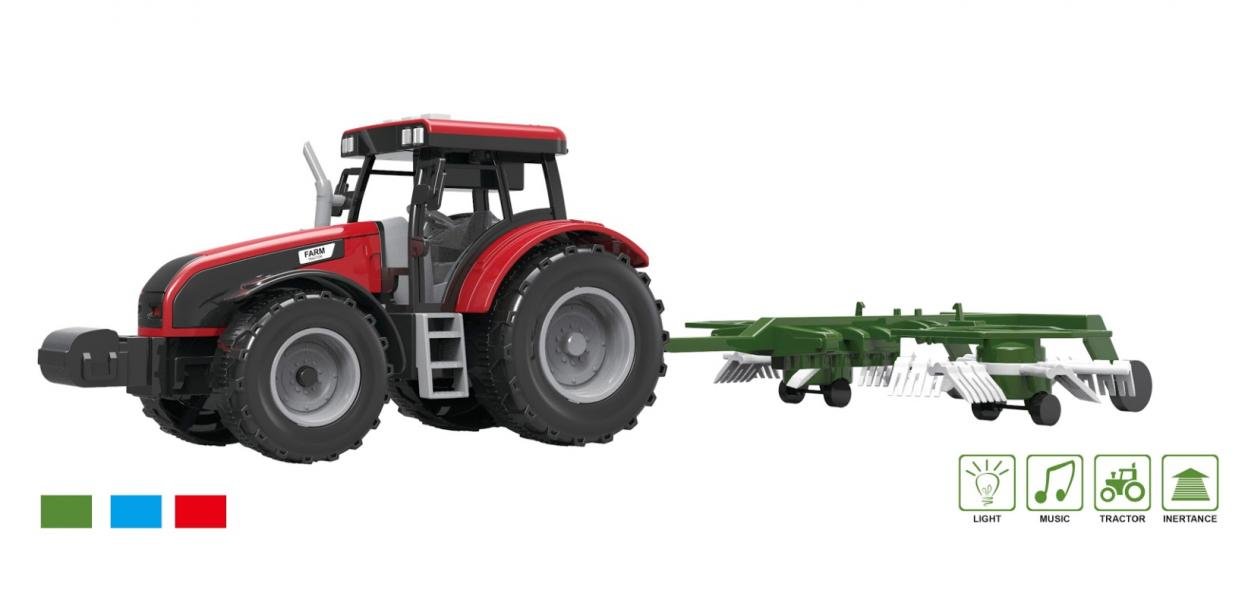 Traktor z maszyną rolniczą, dźwiękami i światłem