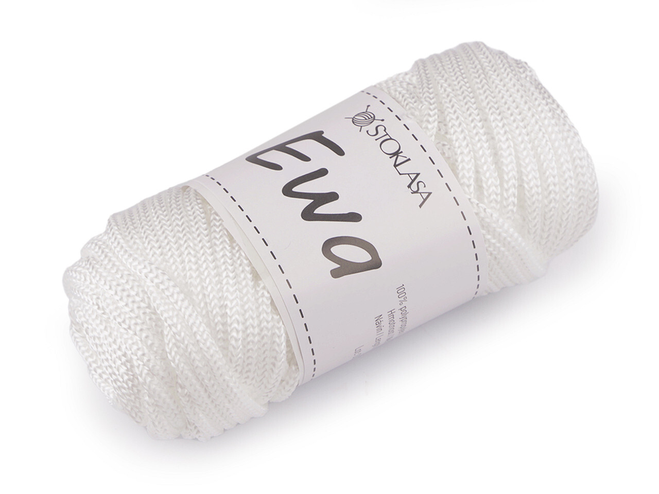 Pletací příze Ewa svým zpracováním připomíná provázek. Její povrch se jemně leskne. Hodí se na pletení a háčkování tašek, košíků a podobných výrobků či dekorací.Velikost jehlic: 5Velikost háčku: 5