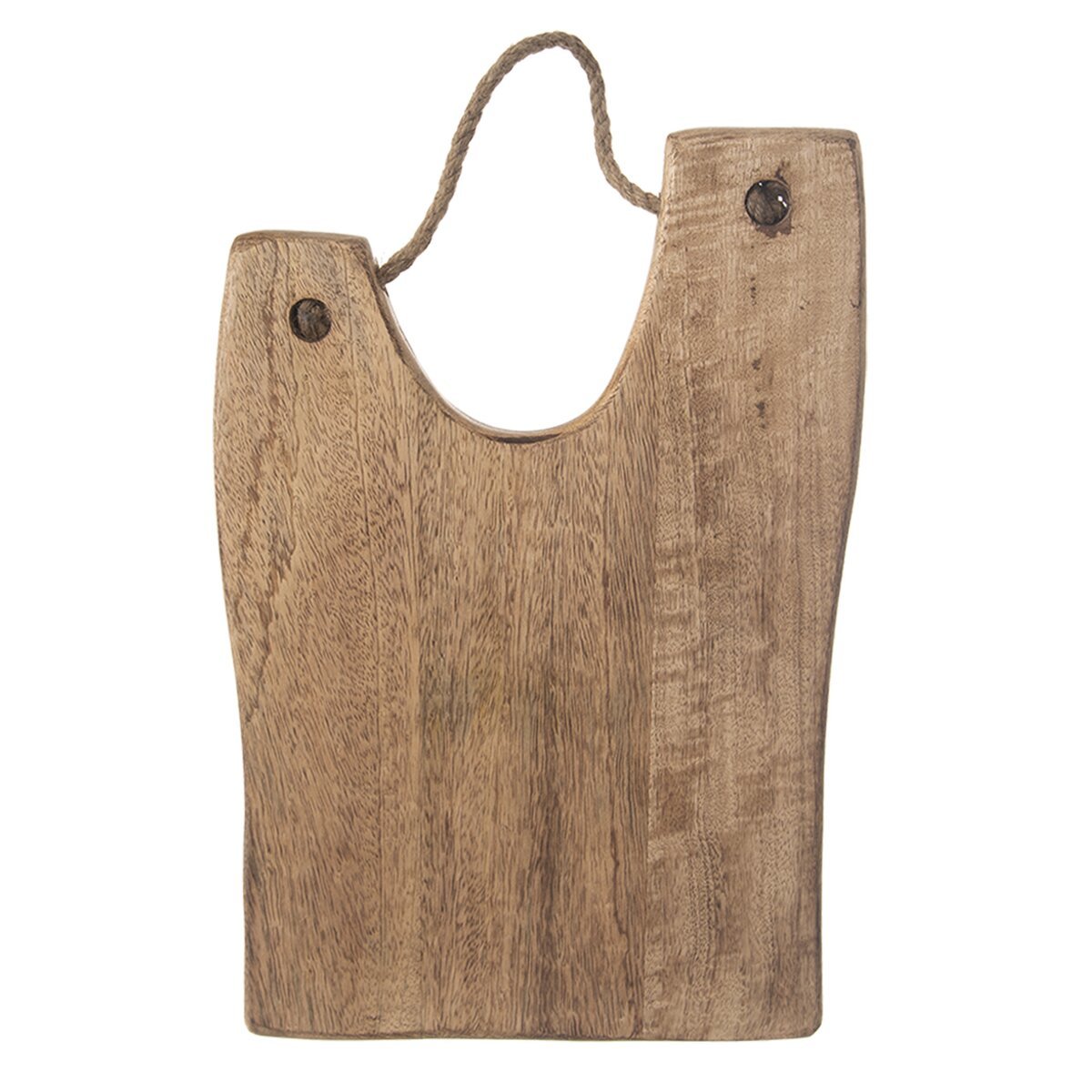 Díky tomuto kuchyňskému prkénku se vaše stolování stane nevšedním zážitkem. Prkénko je ideální na servírování vaší snídaně nebo večeře. Je možné je také zavěsit, vytvoří tak krásnou dekoraci v době, kdy jej nepotřebujete. Snadno se udržuje, stačí jej lehce otřít a je připraveno k dalšímu servírování. Materiál: dřevo mango, jutový provázek. Rozměry: 40,5x28x2 cm. Jednou za čas natřete jedlým olejem. Je možné, že po tomto procesu mangové dřevo ztmavne.
