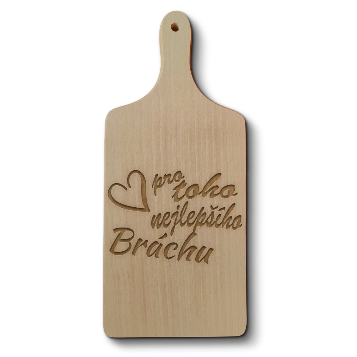 Kuchyňské prkénko s originálním motivemKuchyňské prkénko s originálním vygravírovaným motivem je každodenní pomocník každé kuchařky. Můžete jej věnovat jako nápaditý dárek pro zkušené kuchařky i pro ty méně zdatné, protože díky věnování a dobrému poselství se každé jídlo nakrájené s láskou na tomto prkénku promění v kulinářský požitek. Gravírování je pouze z jedné strany. Vlastnosti:Materiál: Bukové dřevoHmotnost: 450gPovrch: PřírodníDélka: 35 cmŠířka: 15,5 cmVýška: 1,5 cm