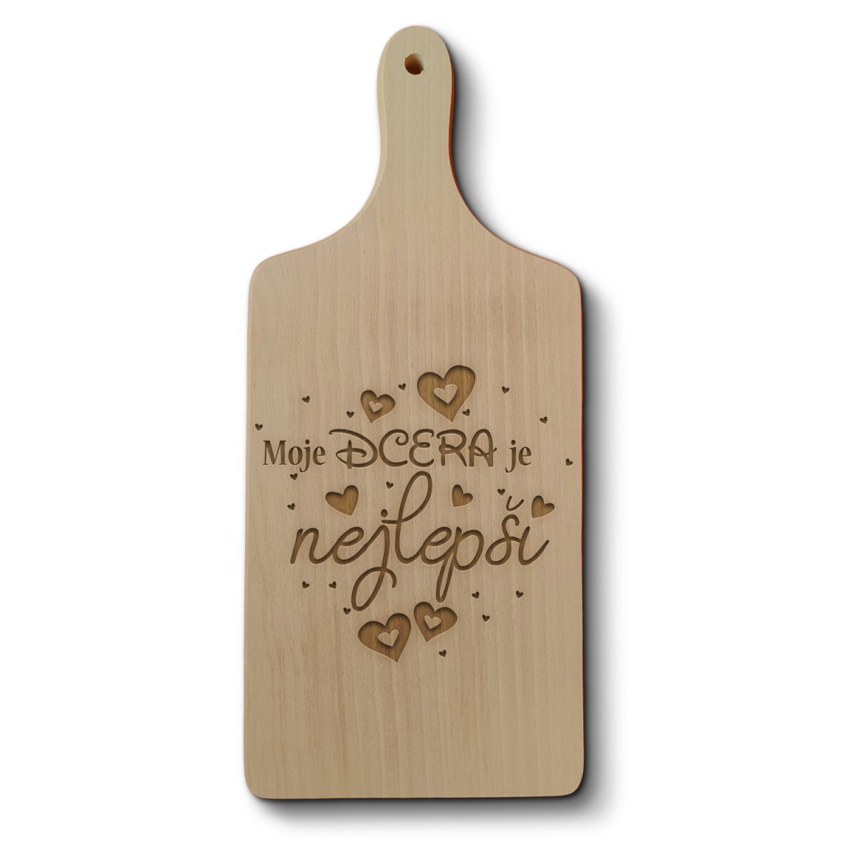 Kuchyňské prkénko s originálním motivemKuchyňské prkénko s originálním vygravírovaným motivem je každodenní pomocník každé kuchařky. Můžete jej věnovat jako nápaditý dárek pro zkušené kuchařky i pro ty méně zdatné, protože díky věnování a dobrému poselství se každé jídlo nakrájené s láskou na tomto prkénku promění v kulinářský požitek. Gravírování je pouze z jedné strany. Vlastnosti:Materiál: Bukové dřevoHmotnost: 450gPovrch: PřírodníDélka: 35 cmŠířka: 15,5 cmVýška: 1,5 cm