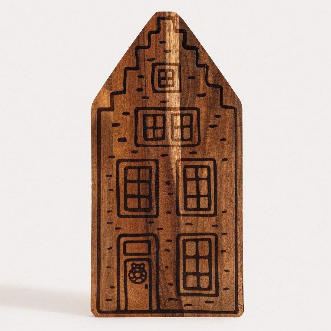Ve tvaru vánočního domečku - Vyrobeno z vysoce kvalitního, odolného dřeva - Ideální pro podávání občerstvení, sýrů, pečiva nebo dezertů - Stylový dekorativní doplněk do kuchyně a jídelny