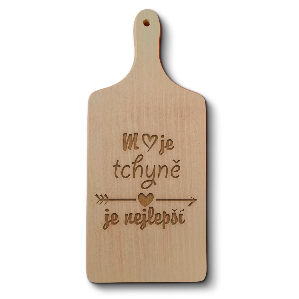 Kuchyňské prkénko s originálním motivemKuchyňské prkénko s originálním vygravírovaným motivem je každodenní pomocník každé kuchařky. Můžete jej věnovat jako nápaditý dárek pro zkušené kuchařky i pro ty méně zdatné, protože díky věnování a dobrému poselství se každé jídlo nakrájené s láskou na tomto prkénku promění v kulinářský požitek. Gravírování je pouze z jedné strany. Vlastnosti:Materiál: Bukové dřevoHmotnost: 450gPovrch: PřírodníDélka: 35 cmŠířka: 15,5 cmVýška: 1,5 cm