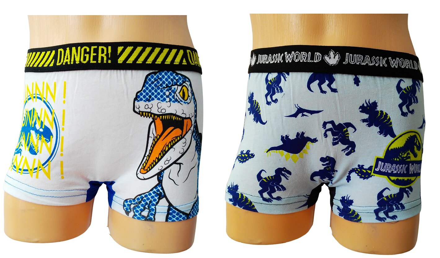 Chlapecké boxerky Jurský svět jsou vyrobeny z BIO bavlny, jsou velmi pohodlné a pružné, s celolátkovými motivy. Jsou nutnou součásti dětského šatníku a tyto navíc udělají i radost díky oblíbenému motivu s dinosaury. V balení jsou dva kusy, které výborně sedí, dokonale se přizpůsobí postavě a v žádném případě neškrtí.