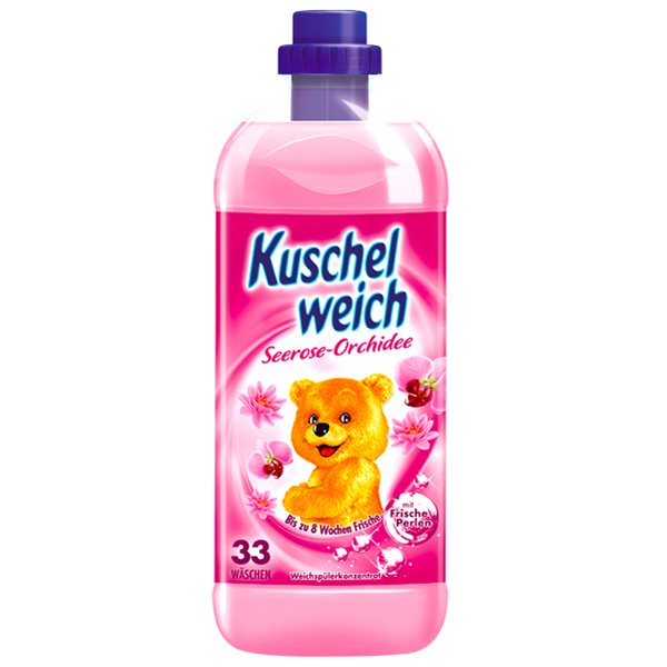 Kuschelweich kvalitní aviváž růžový polibek - 33 pracích dávek Koncentrovaná aviváž Kuschelweich pink kiss - růžový polibek - je velmi příjemý koncentrovaný avivážní přípravek originálem z Německa. Aviváž s medvídkem má patentovanou technologii pro dlouhodobou vůní na prádle při jeho uložení. Aviváž je koncentrovaná a tak není nutné ji dávkovat velké množství. Na jedno běžné praní Vám vystačí pouhých 32ml koncentrované aviváže Kuschelweich.Kuschelweich je německá aviváž s medvídkem, která je v Německu a Rakousku velmi oblíbená. Tato aviváž se specializuje na příjemné vůně, které se také líbí dětěm. Navíc je aviváž, jak je v Německu zvykem koncentrovaná. Aviváže od značky Kuschelweich nejsou dráždivé a jsou tak vhodné při praní dětského prádla.Balení 1L na 33 pracích dávek