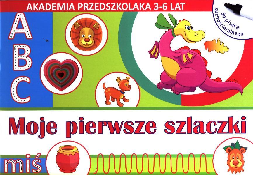 Książeczka dla dzieci od 3 do 6 lat z serii Akademia Przedszkolaka. Znajdują się w niej strony wielokrotnego użytku przeznaczone do używania pisaka suchościeralnego.