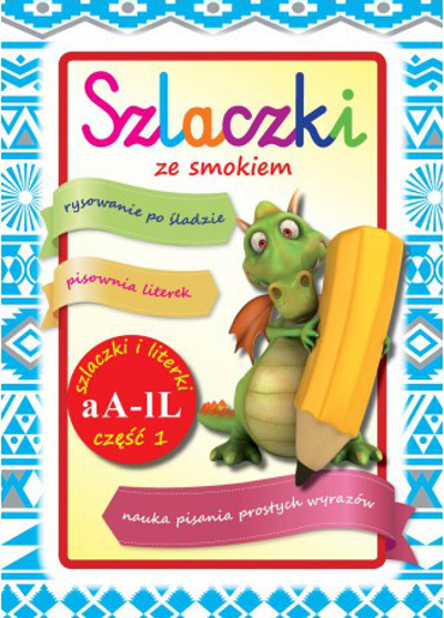 Szlaczki ze smokiem to idealna pozycja dla dzieci rozpoczynających przygodę z nauką pisania.W książce znajdziecie wzory liter, krótkie, proste wyrazy do rysowania po śladzie wraz z kolorowanką.
