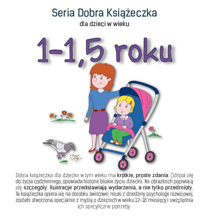 Seria Dobra Książeczka jest napisana i narysowana zgodnie z najnowszym stanem wiedzy psychologii rozwojowej. Na okładce posiada jasny, konkretny, rzeczowy i ciekawy opis etapu rozwoju dziecka.