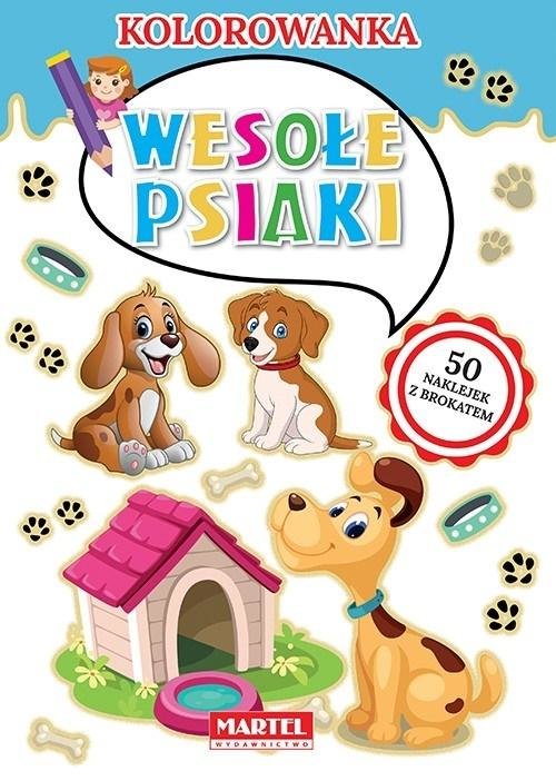 Wesołe psiaki to kolorowanka z ilustracjami sympatycznych psich bohaterów Amigo, Kory, Bazyla oraz innych niebanalnych łobuziaków. Książeczka zawiera 50 naklejek z brokatem.