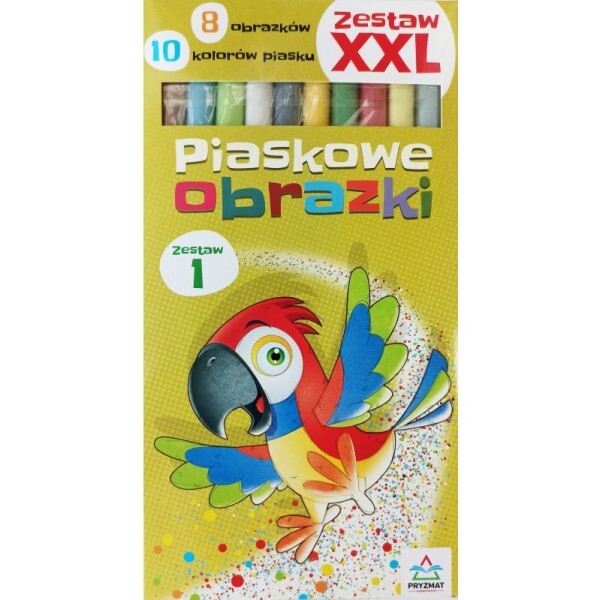 Malowanie piaskiem to oryginalna technika plastyczna, dzięki której dzieci rozwijają swoją wyobraźnię i poczucie estetyki, ćwiczą sprawność manualną, uczą się pracować w skupieniu. Efektem tej twórczej pracy są śliczne, kolorowe obrazki oraz mnóstwo radości i satysfakcji. Zestaw zawiera 8 obrazków o wymiarach 195x140 mm oraz 10 kolorów piasku.