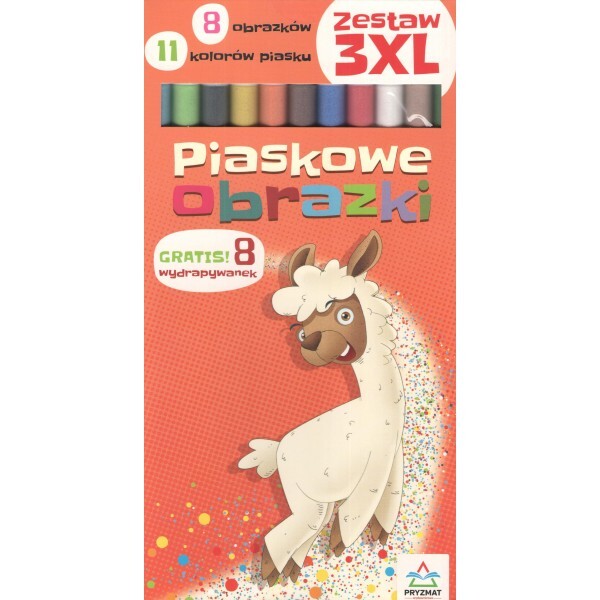 Malowanie piaskiem to oryginalna technika plastyczna, dzięki której dzieci rozwijają swoją wyobraźnię i poczucie estetyki, ćwiczą sprawność manualną, uczą się pracować w skupieniu. Efektem tej twórczej pracy są śliczne, kolorowe obrazki oraz mnóstwo radości i satysfakcji. Zestaw zawiera 8 obrazków o wymiarach 195x140 mm oraz 11 kolorów piasku.