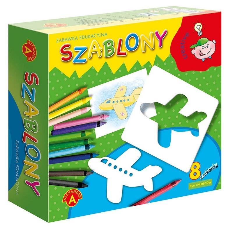 Zabawka składająca się z 8 szablonów, które przedstawiają 8 różnych postaci lub rzeczy. Dzięki nim, każde dziecko może w łatwy sposób odwzorować wybrany obrazek, pomalować i ozdobić doatkowymi elementami.