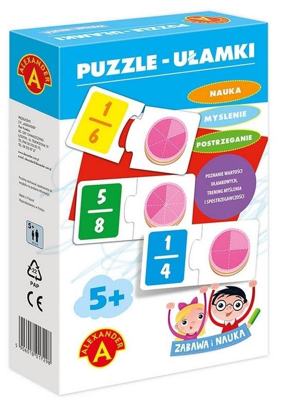 Wspaniałe wprowadzenie do nauki ułamków, pozwalające na proste zrozumienie mechanizmu ich tworzenia. Zabawa polega na dopasowaniu do siebie puzzli prezentujących zapis liczbowy z graficzną prezentacją danego ułamka.