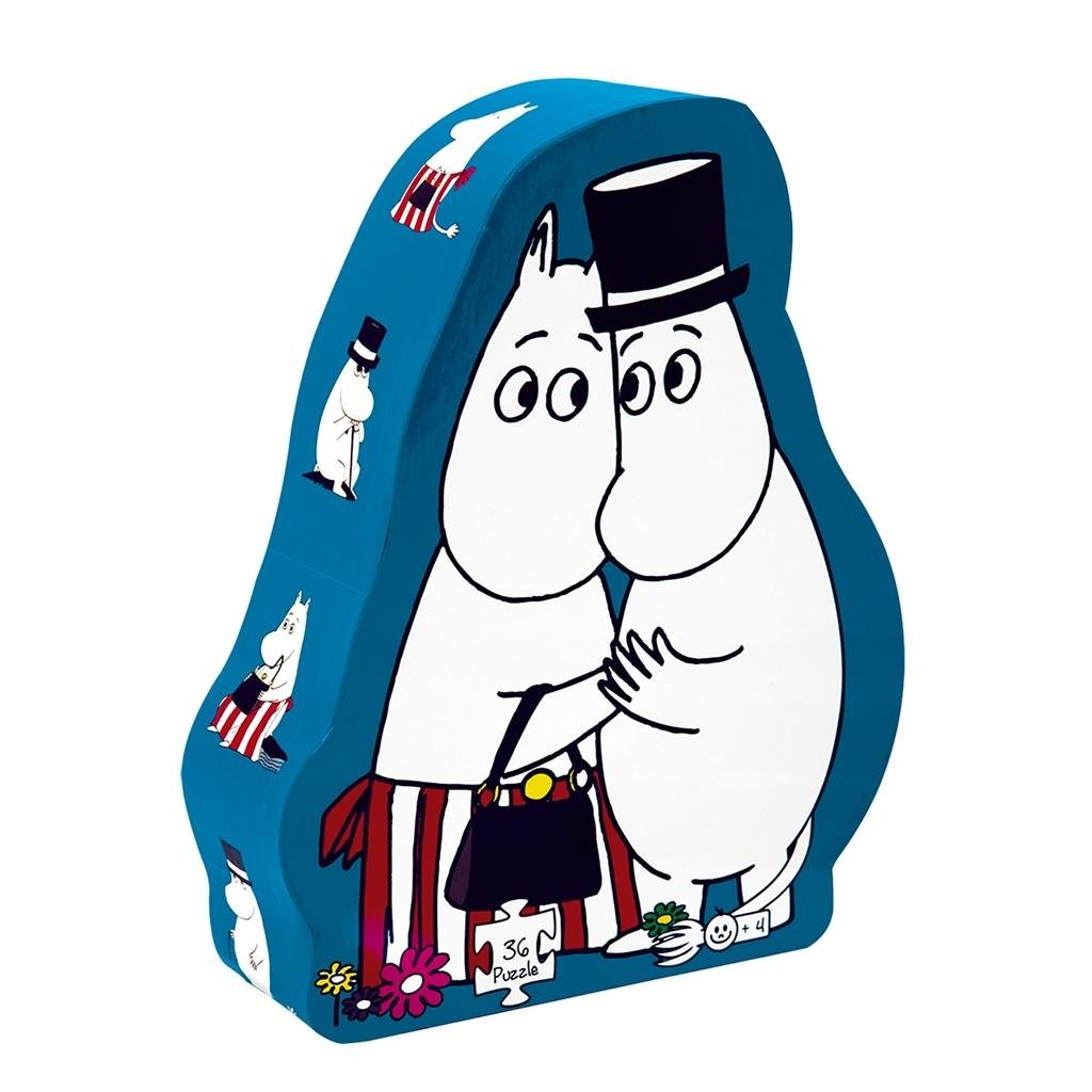 - Zestaw 36 puzzli zapakowany w piękne pudełko w kształcie Mamy i Taty Muminka.