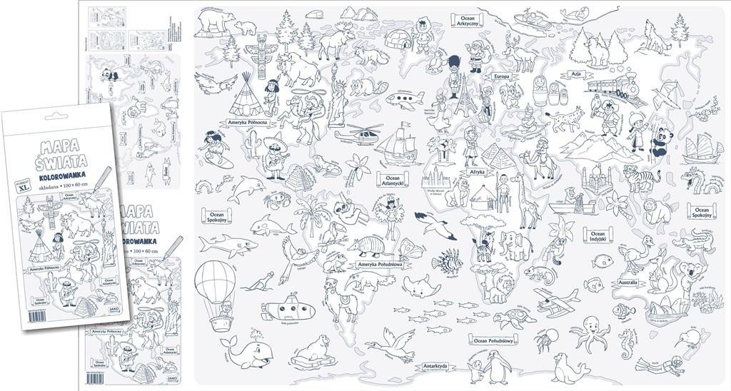 Ze składaną kolorowanką "Mapa świata" dzieci mogą wyruszyć w swoją pierwszą podróż dookoła globu. Poznają przy tym zwierzęta, rośliny, symbole i postacie charakterystyczne dla poszczególnych kontynentów. Kredki w dłoń! Ogromny, ilustrowany arkusz o wymiarach 100 x 60 cm jest do dyspozycji małego...