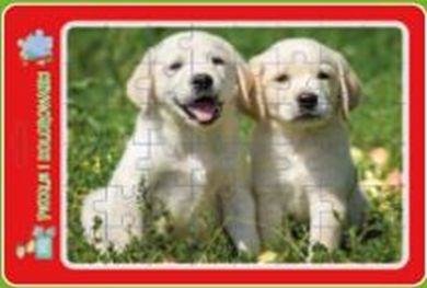 Puzzle w ramce z kolorowanką. Szczeniaczki