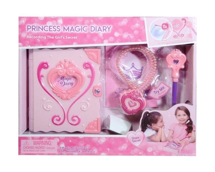 Pamiętnik księżniczki do zapisywania tajnych sekretów dziewczynek. Pamiętnik zamykany na klucz, wystarczy przybliżyć długopis i pamiętnik się otworzy. A magiczny naszyjnik i umieszczona w nim dioda pozwolą przeczytać tajemne sekrety. Produkt działa na baterie typu AA (niezałączone) oraz CR2032 (załączone). Produkt dla dzieci od 3 lat. Zabawka zapakowana w kartonowe opakowanie z przezroczystym okienekiem. Podane wymiary sa wymiarami opakowania.